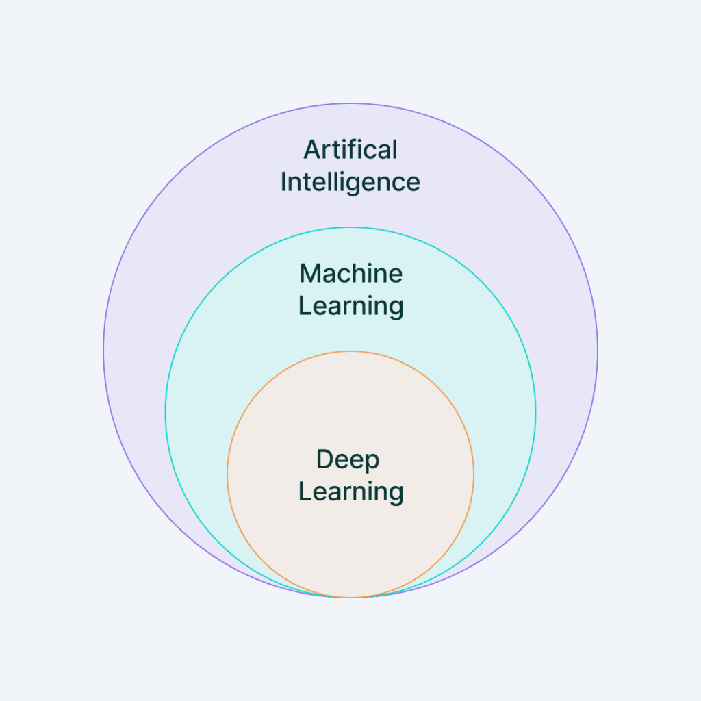 - Deep learning is a sophisticated neural network-based subset for complex tasks.